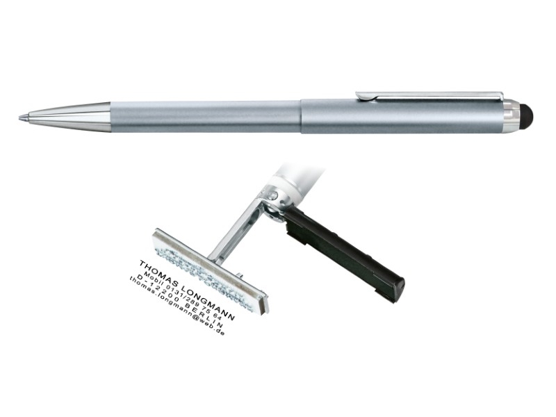 Propisovací tužka HERI Diagonal s vestavěným razítkem až pro 3 řádky textu.